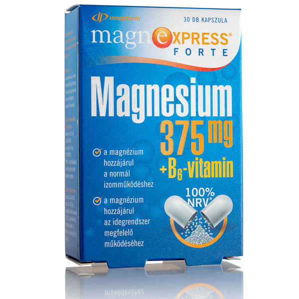 Aktiver Wirkstoff 1 Kapsel (750 mg) NRV*Magnesium 375 mg 100%Vitamin B6 1,4 mg 100%*NRV = Tägliche Referenzzufuhr für ErwachseneAktiver Wirkstoff: Magnesium, Vitamin B6Verpackung: 30 Stk. Kapseln im Blister, in FaltschachtelBehält die Qualität: siehe VerpackungVertriebshändler: Innopharm Gyógyszergyártó Kft., 1037 Budapest, Hungary